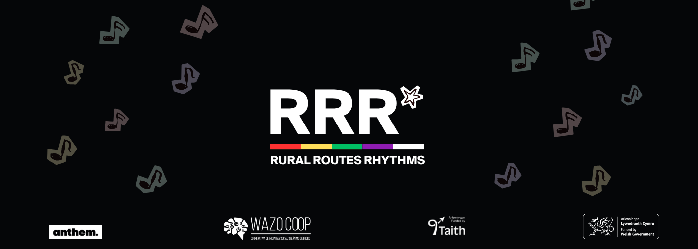 RRR Rural Routes Rhythms: Anthem x Wazo Coop International Project Mae Rhythmau Llwybrau Gwledig yn fenter sy’n cael ei hariannu gan Taith ac mae wedi’i dylunio i fynd i’r afael â’r rhwystrau sy’n wynebu gweithwyr proffesiynol ifanc ym myd cerddoriaeth mewn ardaloedd gwledig yng Nghymru a Sbaen. Trwy brosiect