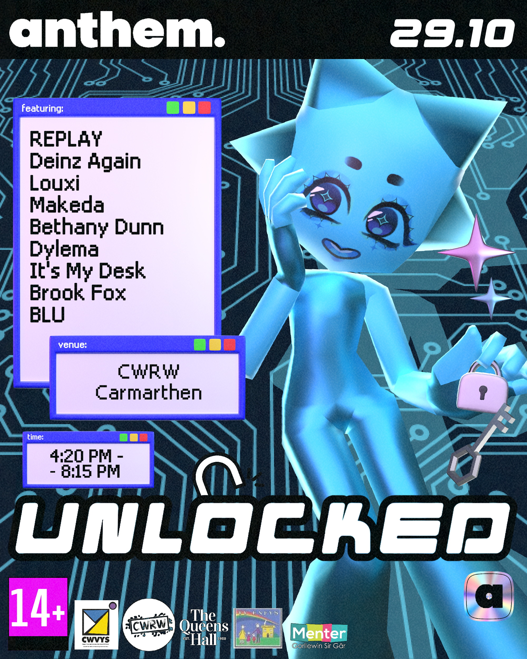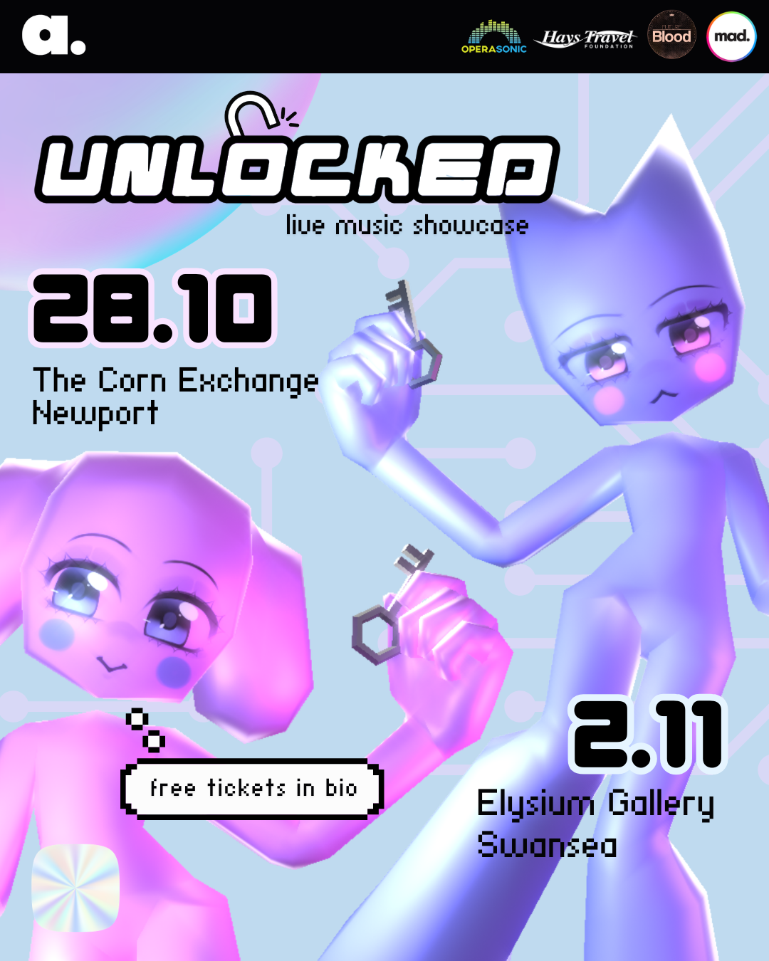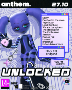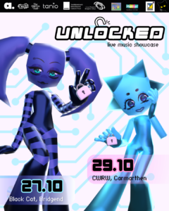 Since 2024, we have hosted two showcases within half-term time in grassroots venues. Unlocked showcase locations include Club y Bont in Pontypridd, The Fork n Tune in Cwmcarn, The Corn Exchange in Newport, Clwb for Bach in Cardiff, Elysium Gallery in Swansea, CWRW in Carmarthen and The Black Cat in Bridgend.